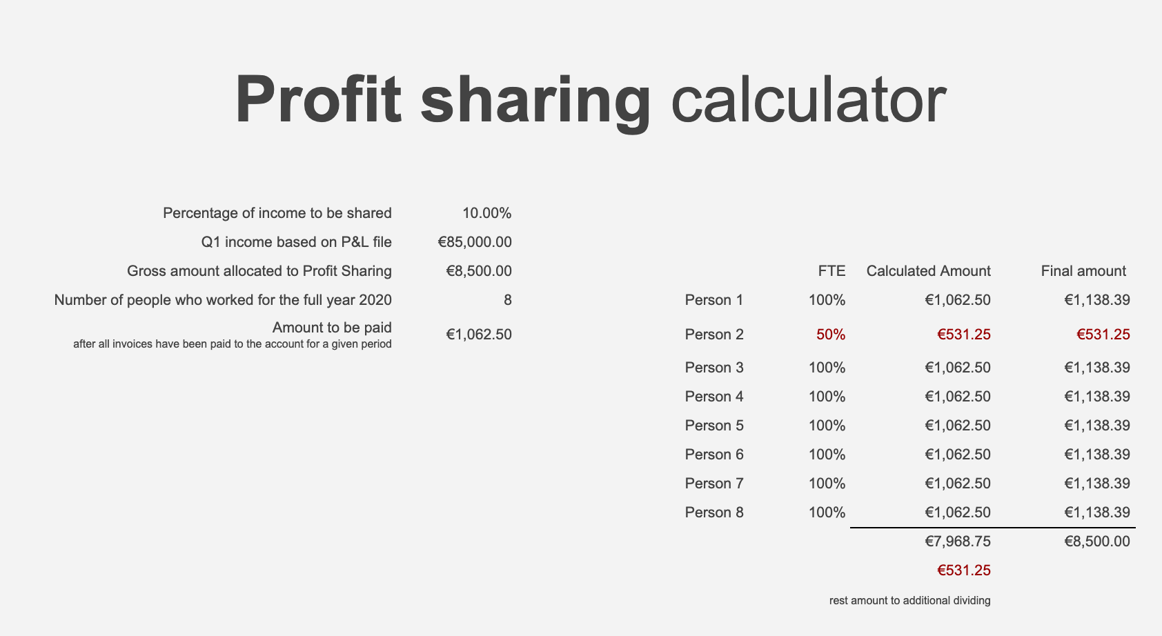 Up to the point of writing, we had only three iterations of profit sharing. Two of them happened before the pandemic (in 2019). We approached the idea again this year. It's still hard to say how profit sharing increases the feeling of ownership. For sure it is worth trying and we will definitely continue sharing our profit in the next quarters.